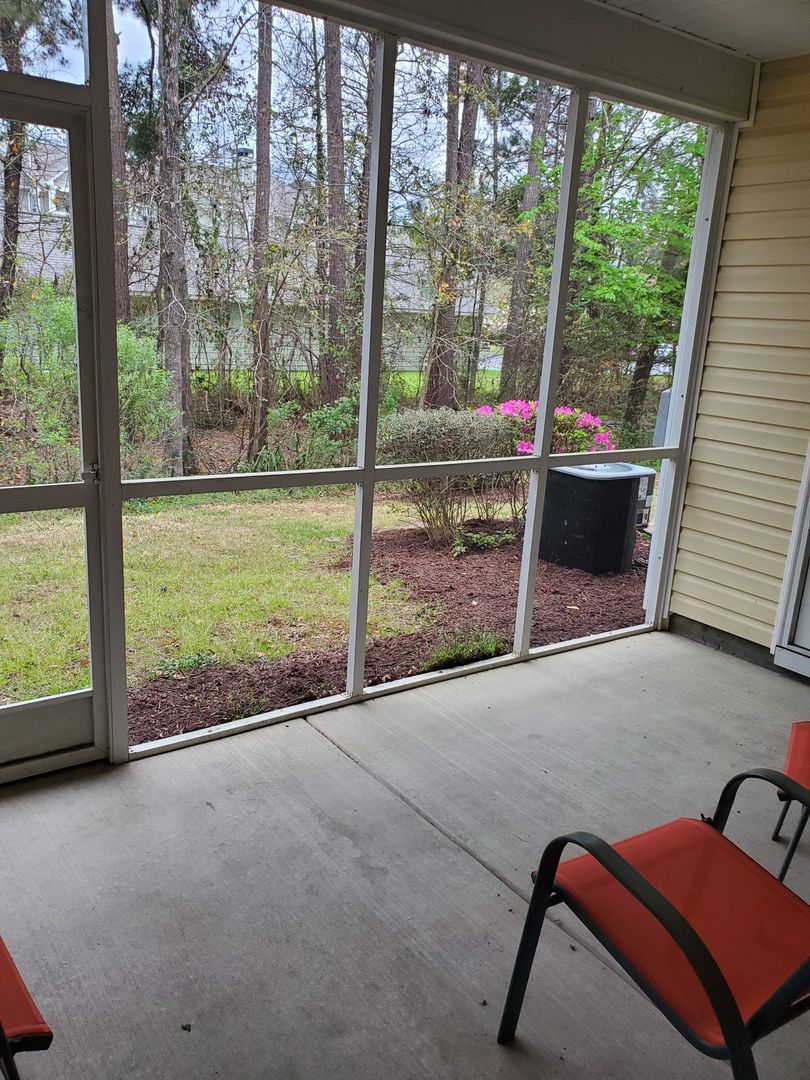 Step outside and relax on the screened-in porch overlooking the community grounds—ideal for enjoying fresh air without the bugs!