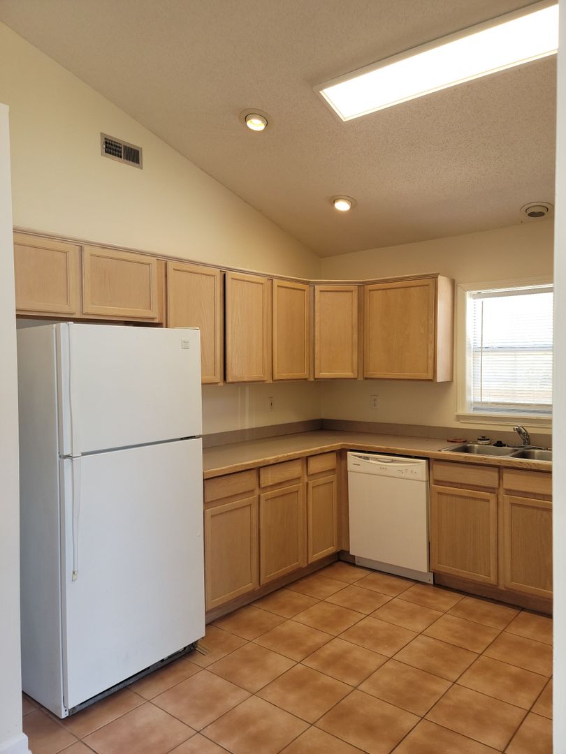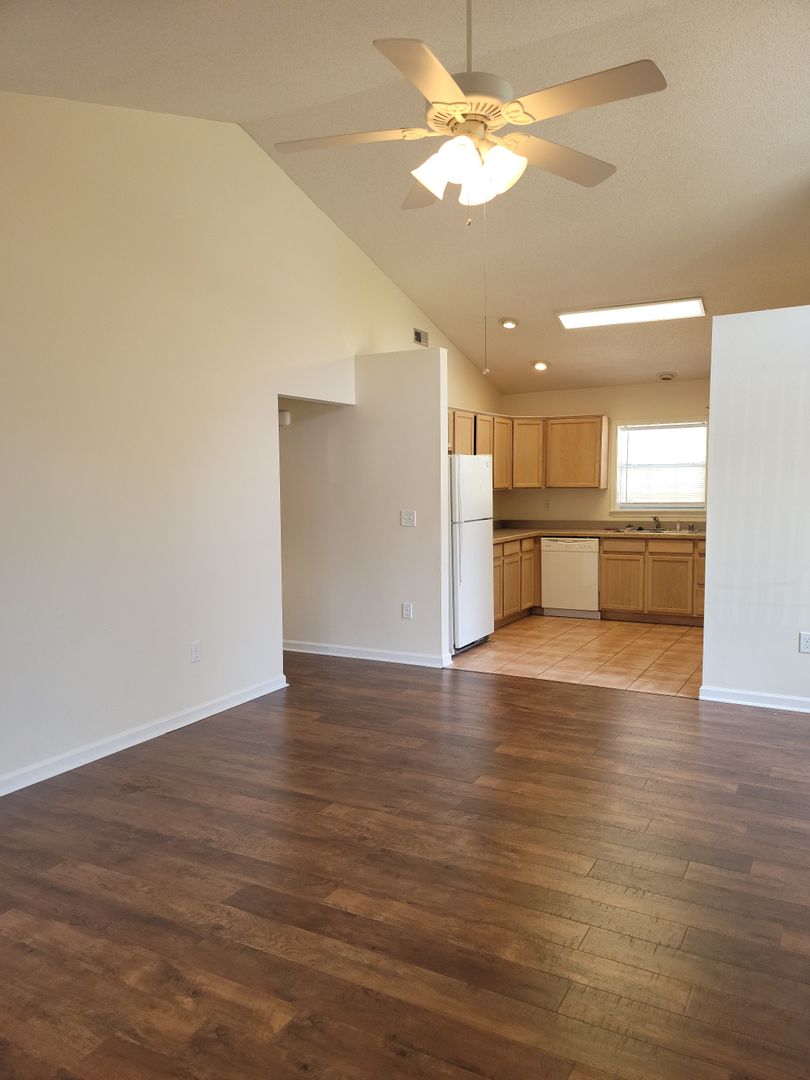 Vaulted ceilings in the living room & kitchen for an open, airy feel