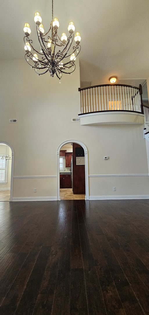 As you enter, you’re immediately greeted by soaring vaulted ceilings, rich hardwood floors, and custom woodwork that set a warm yet impressive tone. The formal dining room is perfectly positioned off the entry, ideal for entertaining.