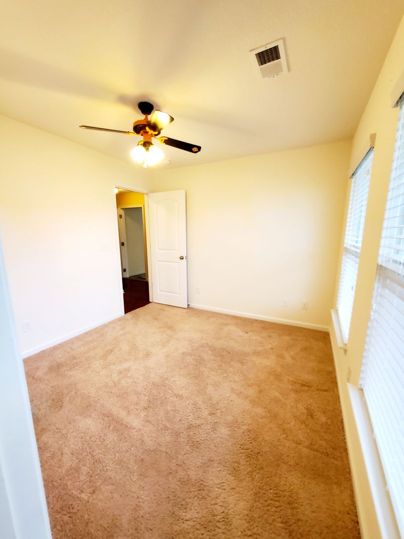 The split-bedroom layout offers added privacy, while the primary suite includes a walk-in closet and private bath. Additional features include washer/dryer connections, ceiling fans, and plenty of storage.