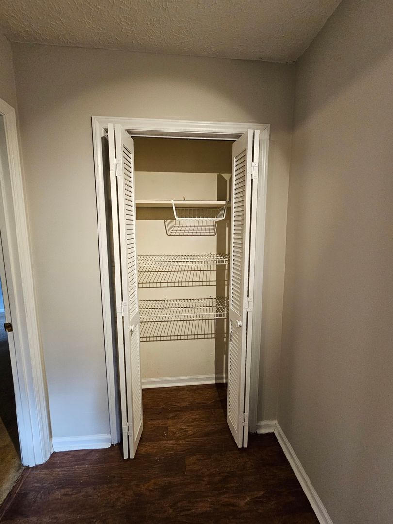 The primary bedroom includes two closets and an attached bathroom with a shower/tub combo. Two additional bedrooms with closets share a full bathroom, providing comfortable accommodations.